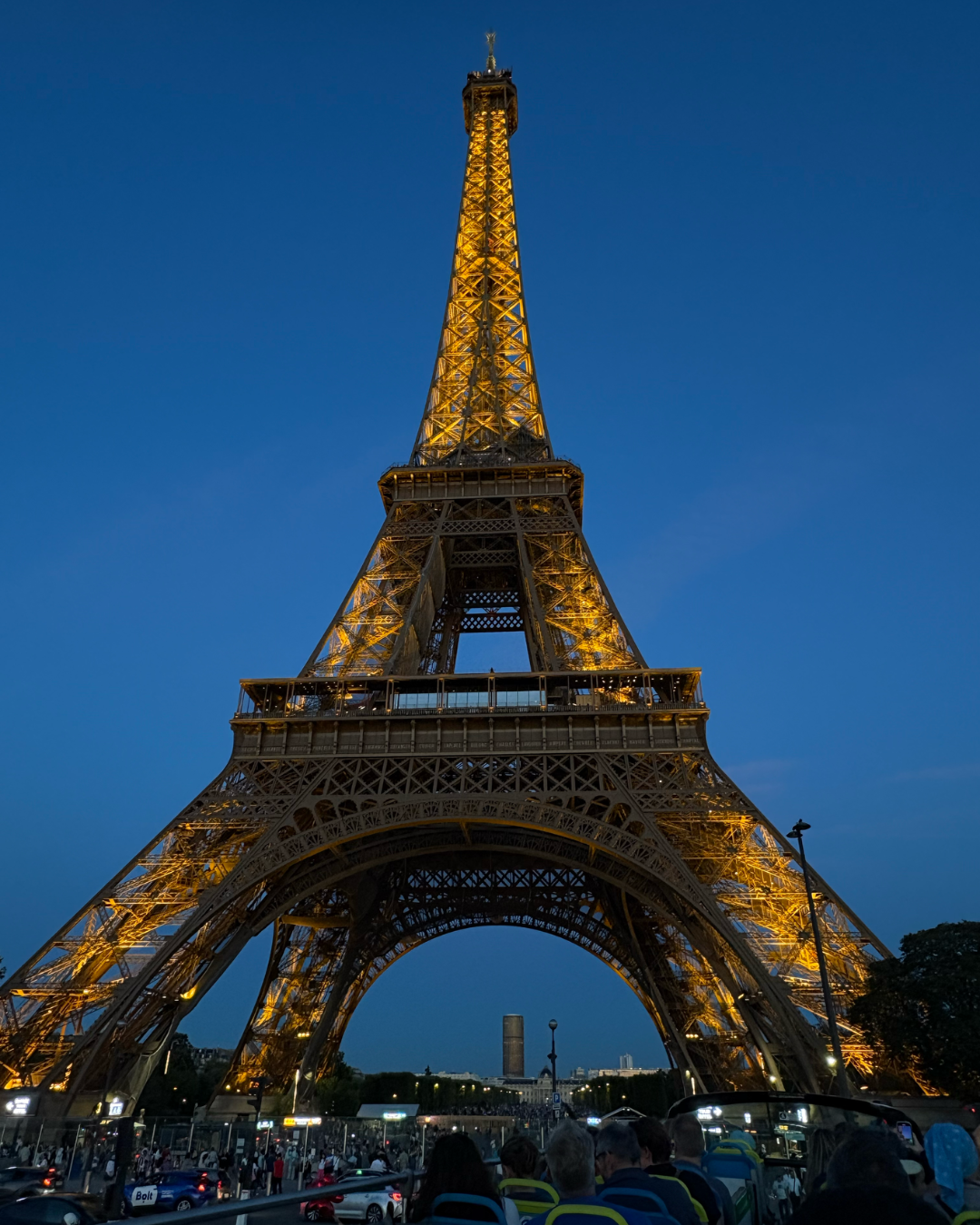 - Paris by Night. We took a “Paris by Night” TootBus tour, where you sit on the open-air top level of their double-decker bus and go on a two-hour driving tour of all the major sights in the city. They time it perfectly to catch the beginning of the sparkles at the Eiffel Tower.